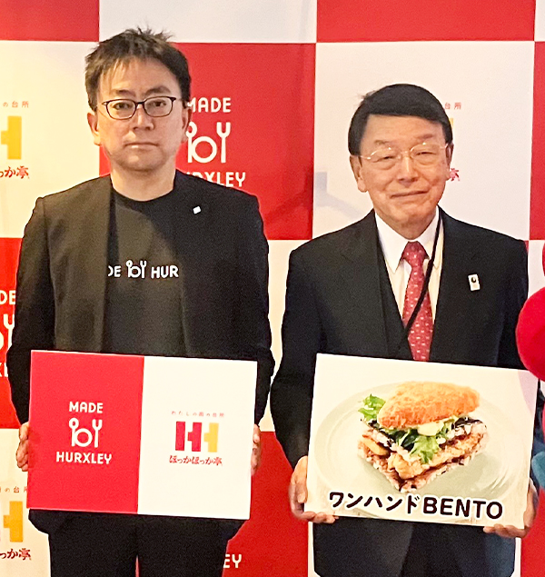 【関西】持ち帰り弁当の「ほっかほっか亭」をチェーン展開するハークスレイは1月30日、大阪・関西万博の「大阪ヘルスケアパビリオン」で提供する「ミライの弁当」のメディア試食会を大阪市北区の本社で実施した。片手で食べられる「