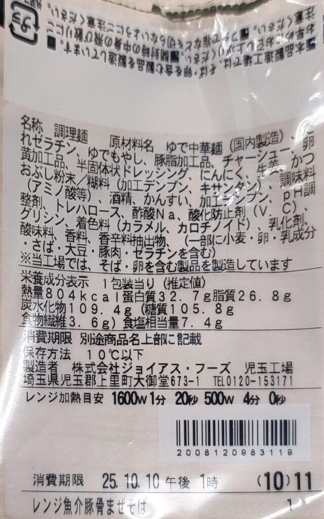 株式会社ジョイアス・フーズ 児玉工場製造。