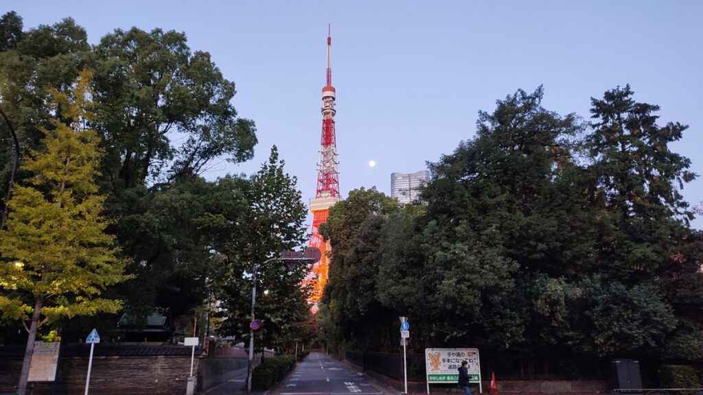 東京タワーと丸い月! 良い塩梅に撮影できました。