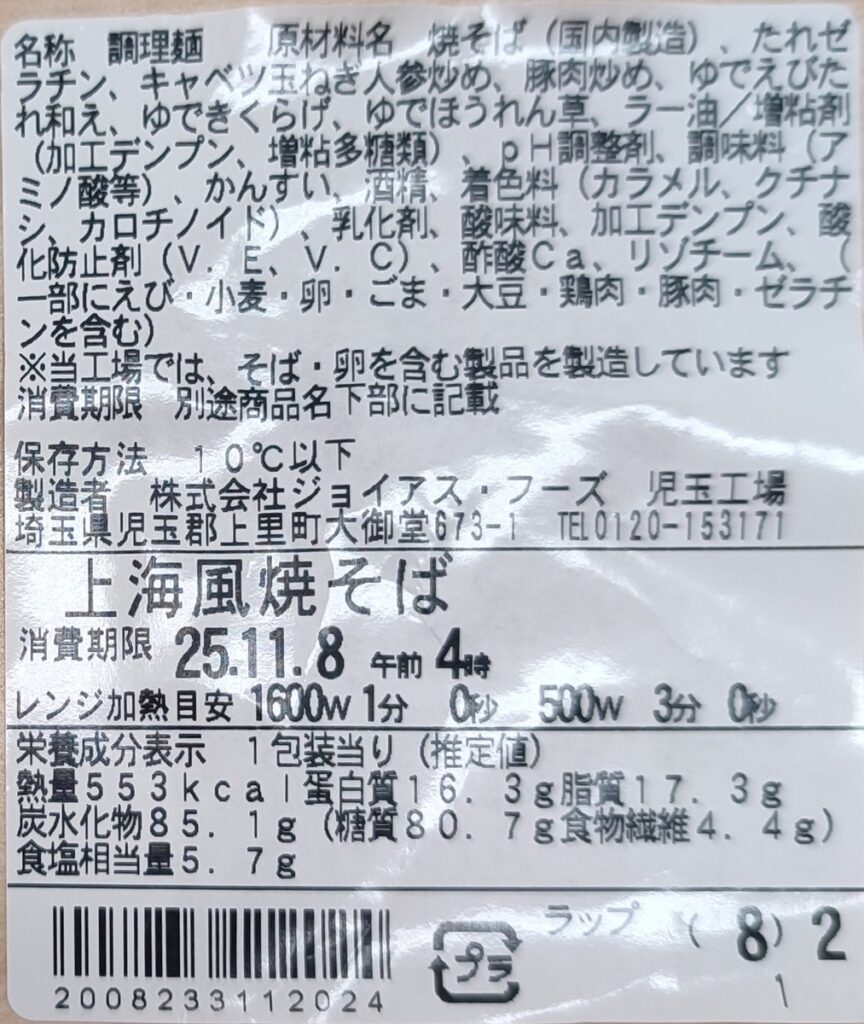 株式会社ジョイアス・フーズ 児玉工場製造。