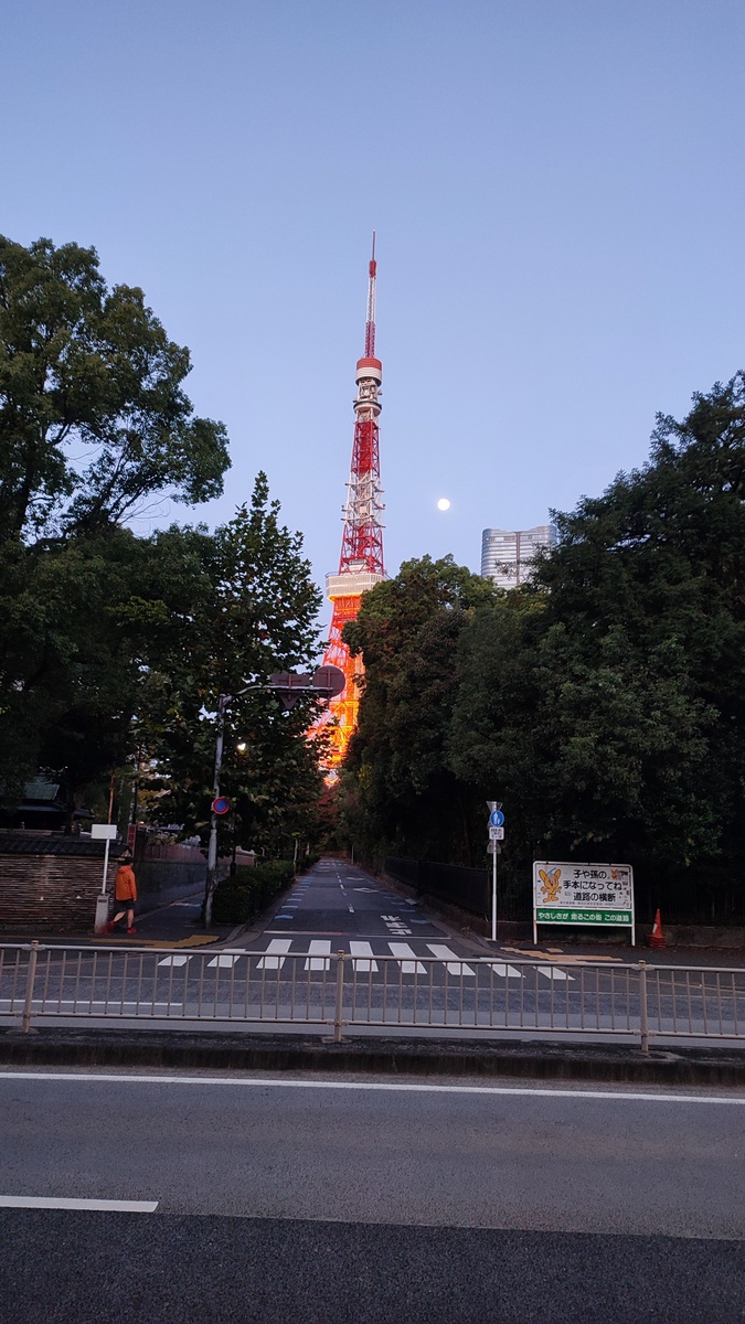 東京タワーと丸い月! 良い塩梅に撮影できました。