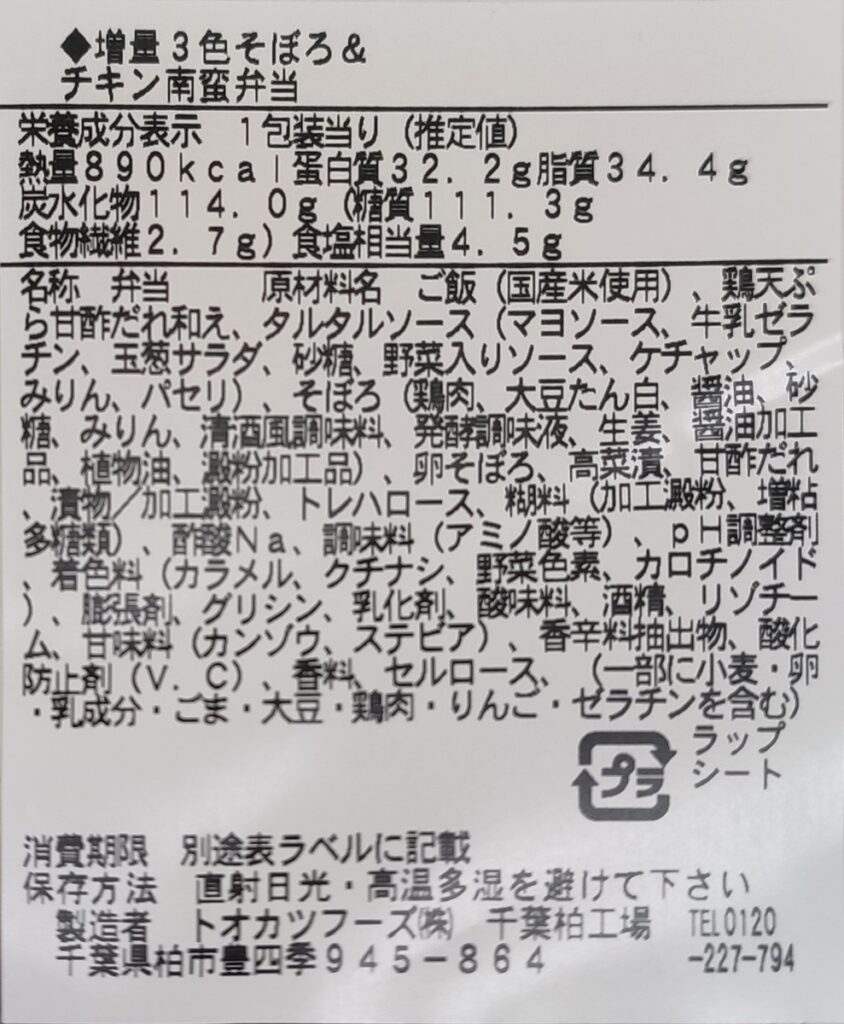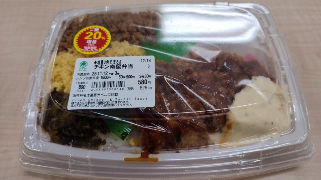 『増量 3色そぼろ&チキン南蛮弁当』626円(税込)| 890kcal