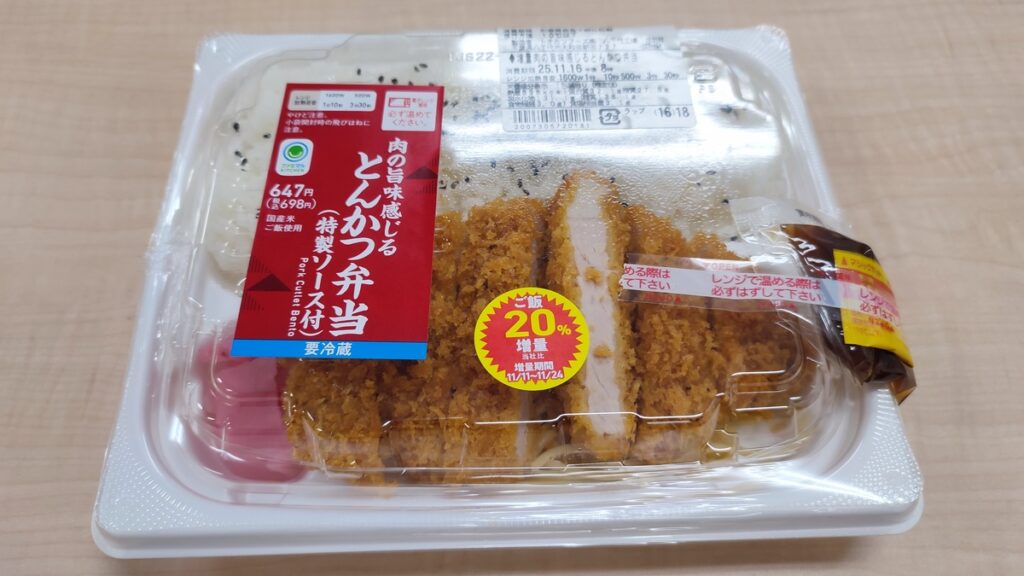 『増量 肉の旨味感じるとんかつ弁当(特製ソース付)』698円(税込)| 898kcal