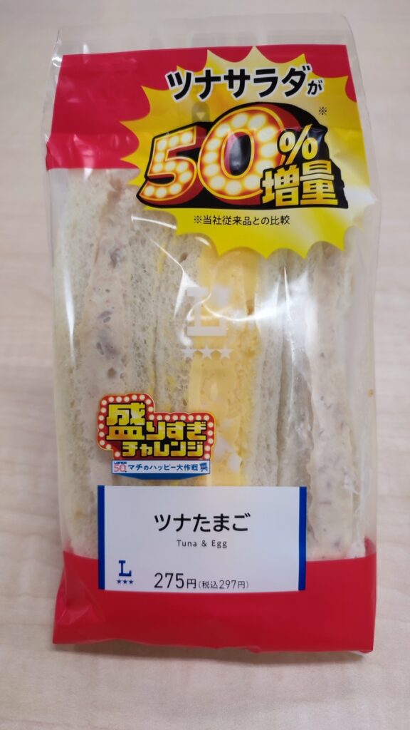 肝心のサンドイッチはツナサラダが50%増量とのこと。