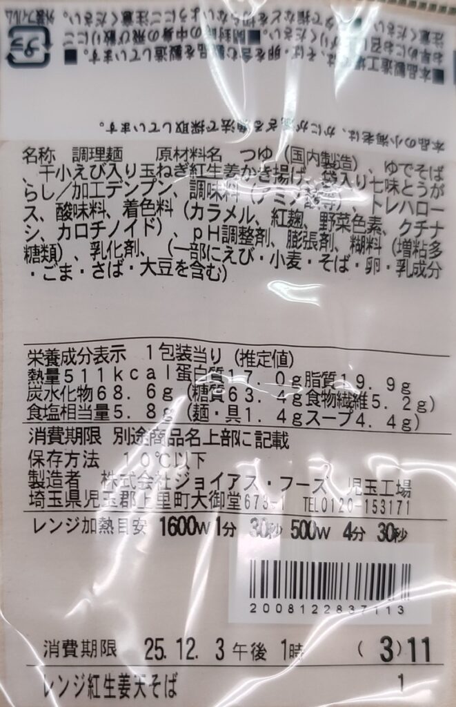 株式会社ジョイアス・フーズ 児玉工場製造。