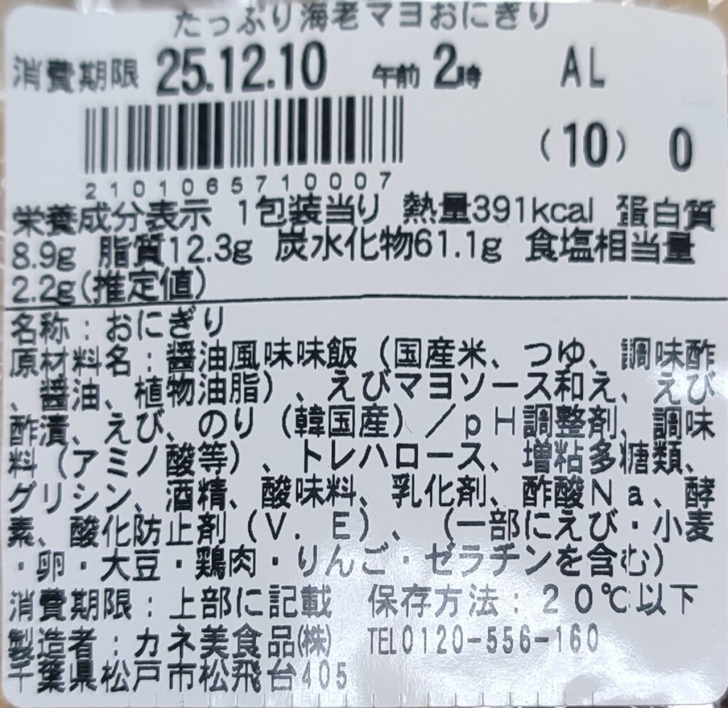 『海老マヨ好きのためのたっぷり海老マヨおにぎり』350円(税込)| 391kcal