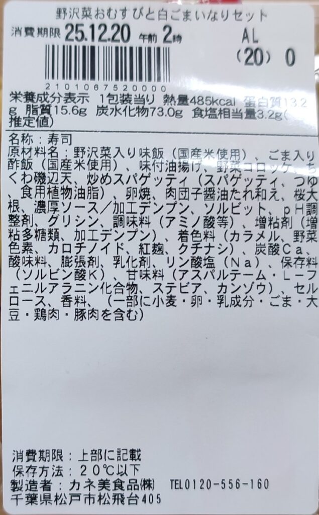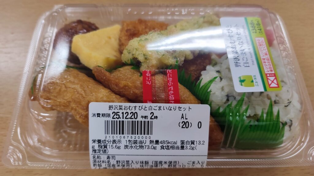 『野沢菜おむすびと白ごまいなりセット』418円(税込)| 485kcal