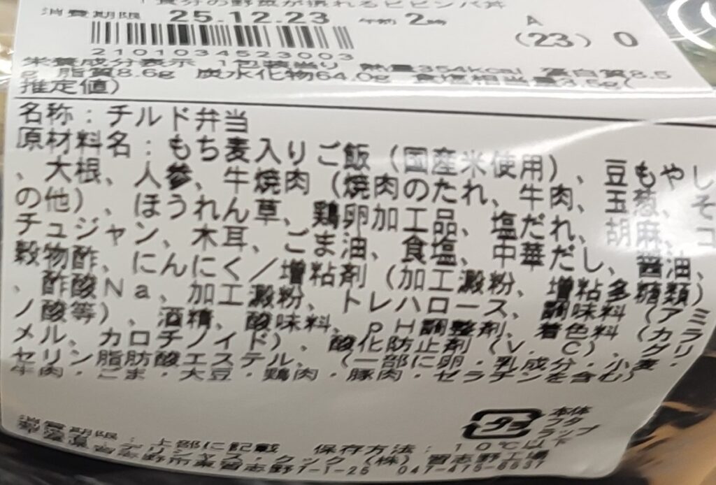 デリシャス・クック株式会社 習志野工場製造。