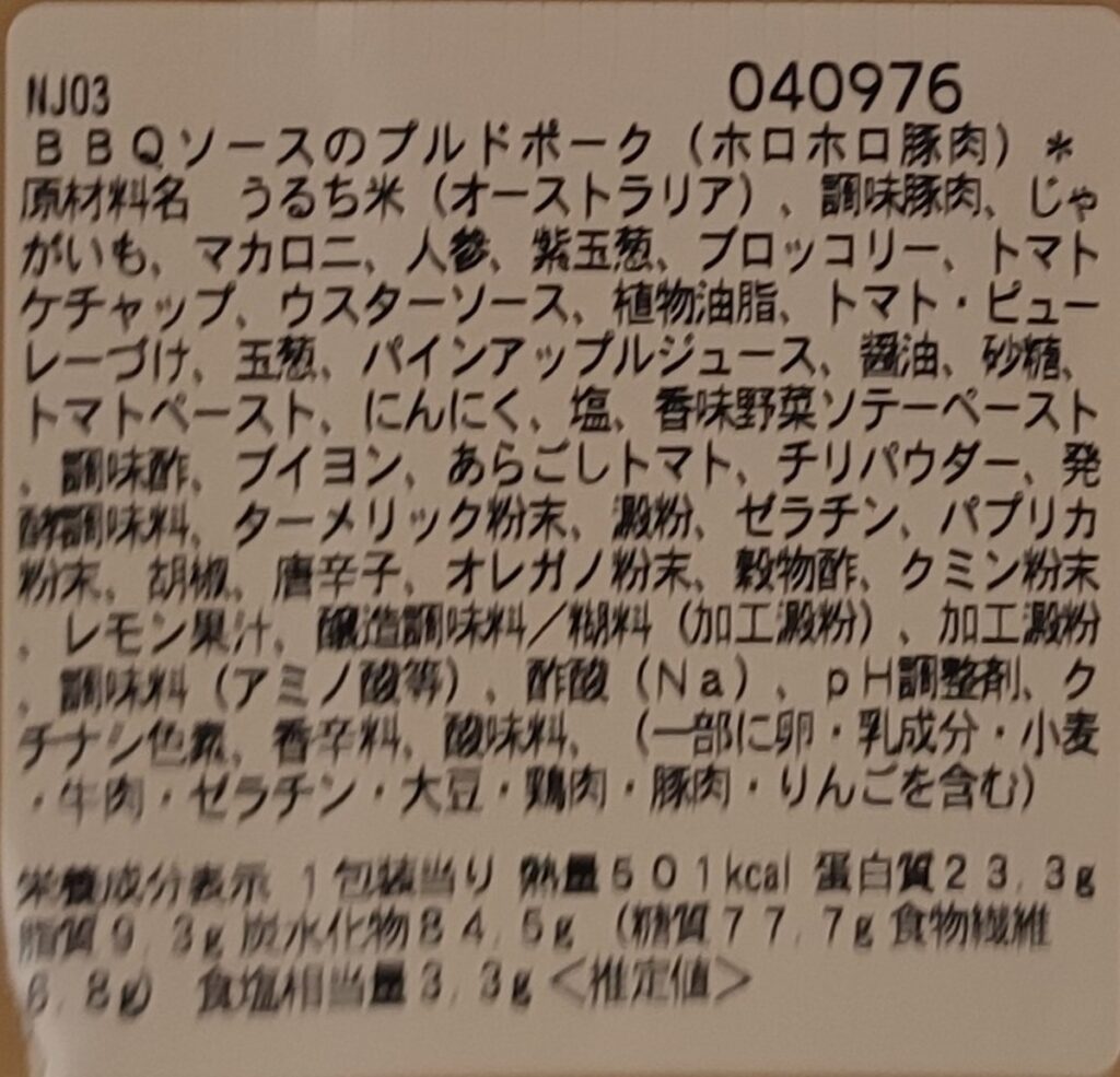 - 『BBQソースのプルドポーク』うるち米(オーストラリア)