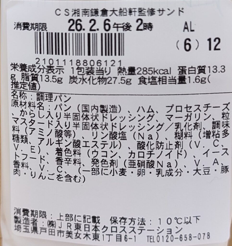 『湘南鎌倉大船軒監修サンド』420円(税込)| 285kcal