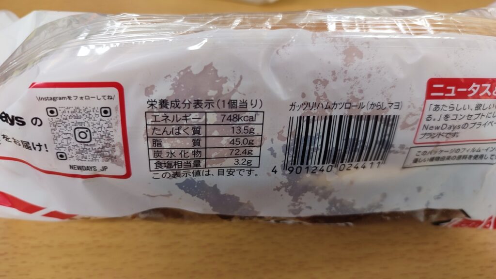 『ガッツリ!ハムカツロール(からしマヨ)』280円(税込)| 748kcal