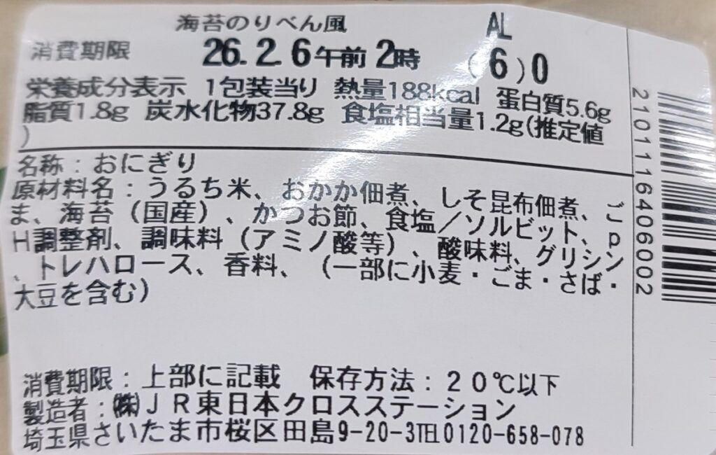 『福豆屋 海苔のりべん風おにぎり』220円(税込)| 188kcal