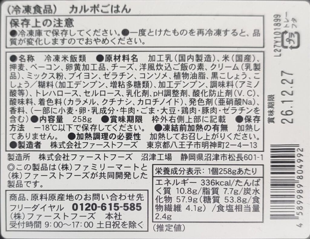 株式会社ファーストフーズ 沼津工場製造。