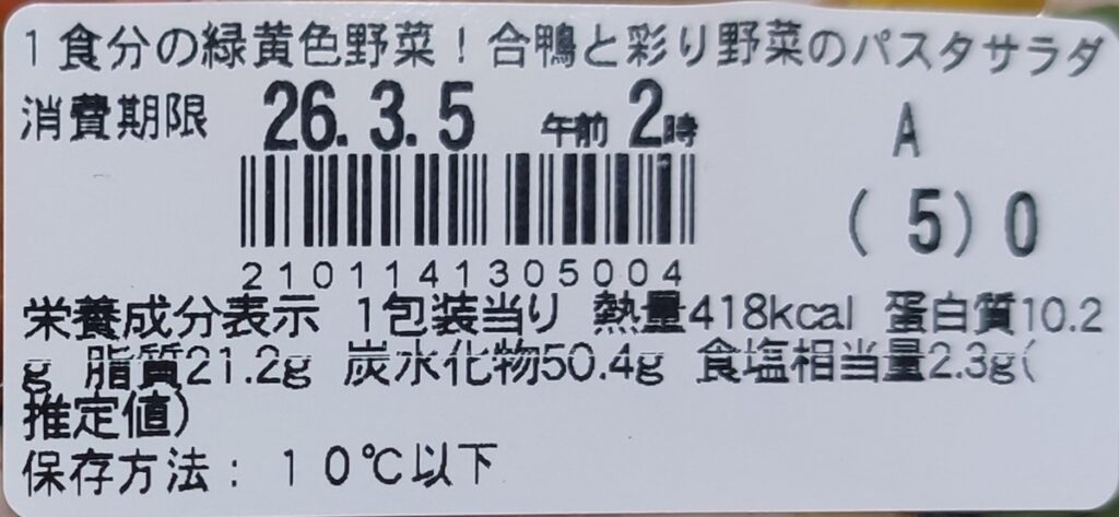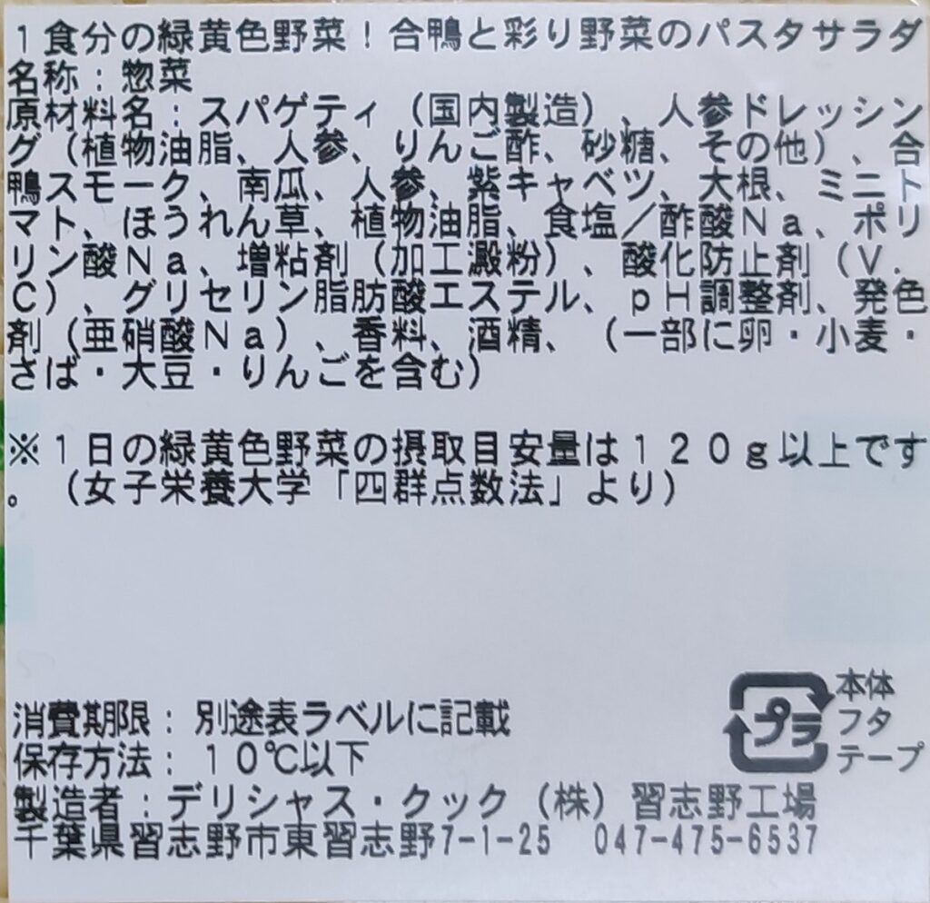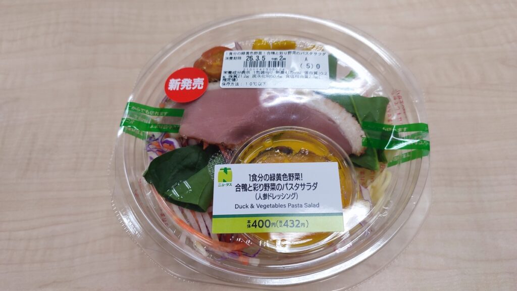 『1食分の緑黄色野菜!合鴨と彩り野菜のパスタサラダ』432円(税込)| 418kcal