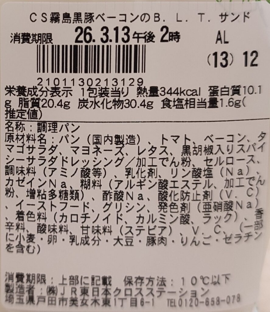 『霧島黒豚ベーコンのB.L.T.サンド』380円(税込)| 344kcal