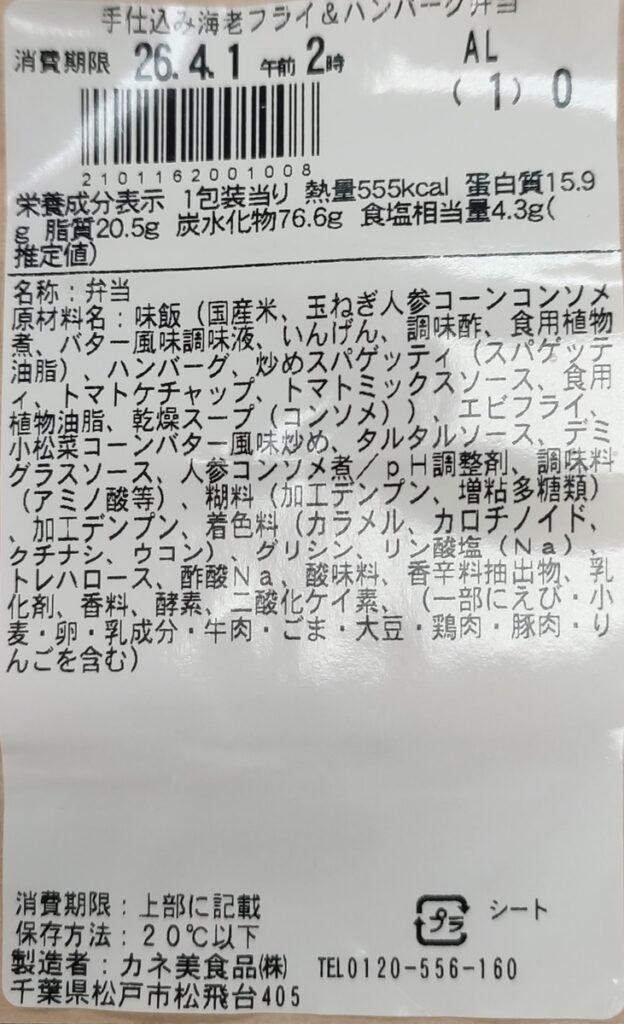 カネ美食品株式会社製造。