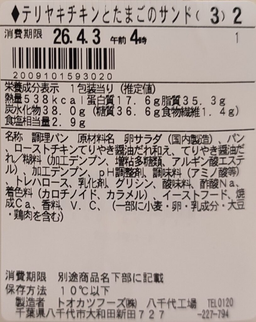 テリヤキチキンとたまごサラダの組み合せは