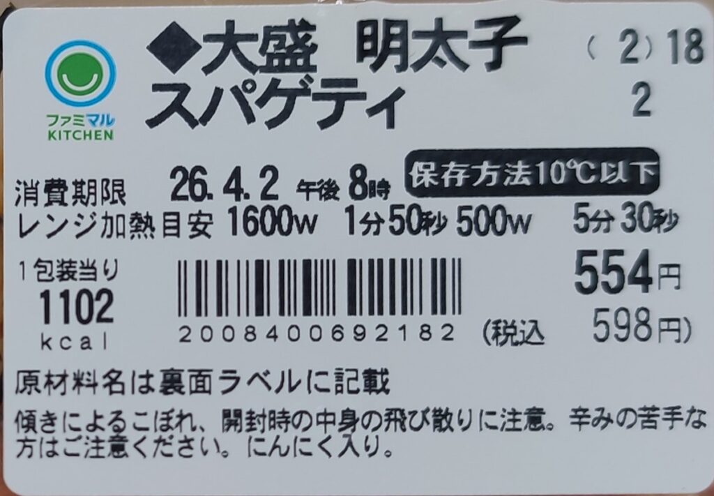 『【なぜか45%増量作戦】大盛 明太子スパゲティ』598円(税込)| 1,102kcal