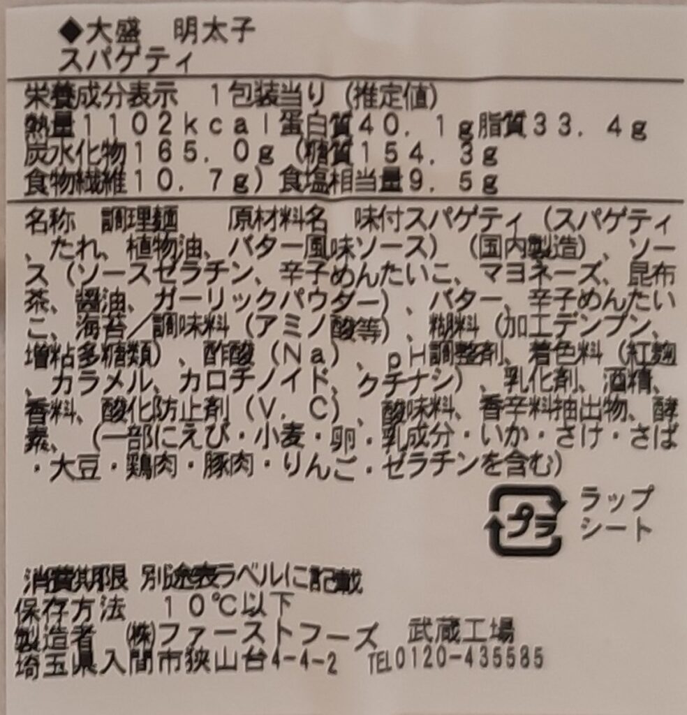 株式会社ファーストフーズ 武蔵工場製造。