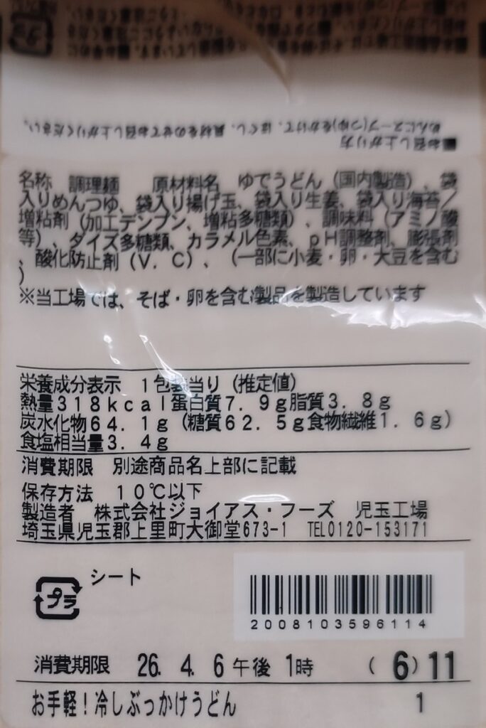 株式会社ジョイアス・フーズ 児玉工場製造。