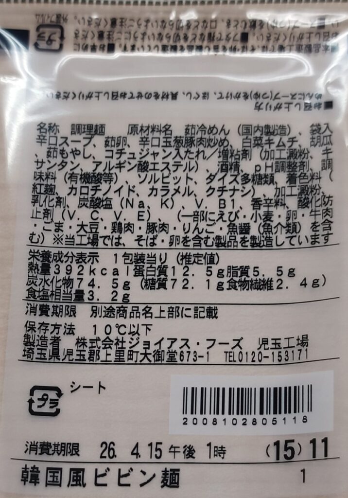 今日のコンビニごはん。ファミリーマート『【韓国本格グルメ】冷し韓国風ビビン麺』感想。