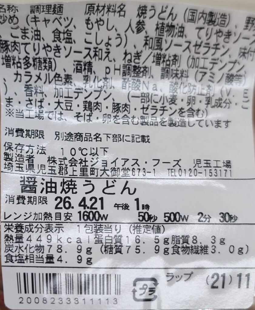株式会社ジョイアス・フーズ 児玉工場製造。