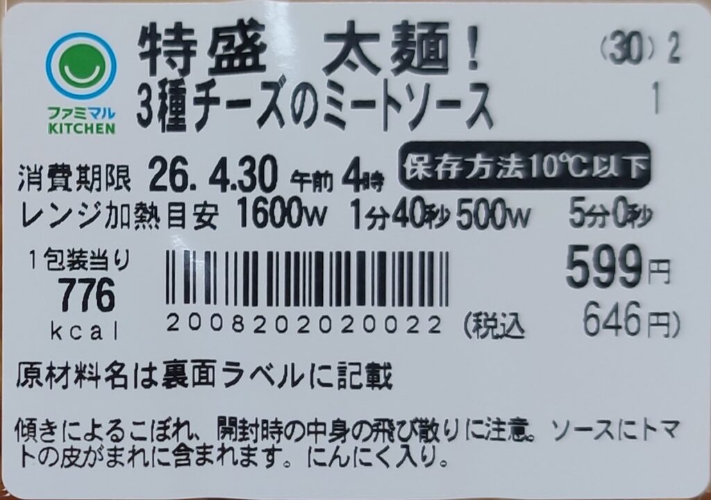 『特盛 太麺!3種チーズのミートソース』646円(税込)| 776kcal