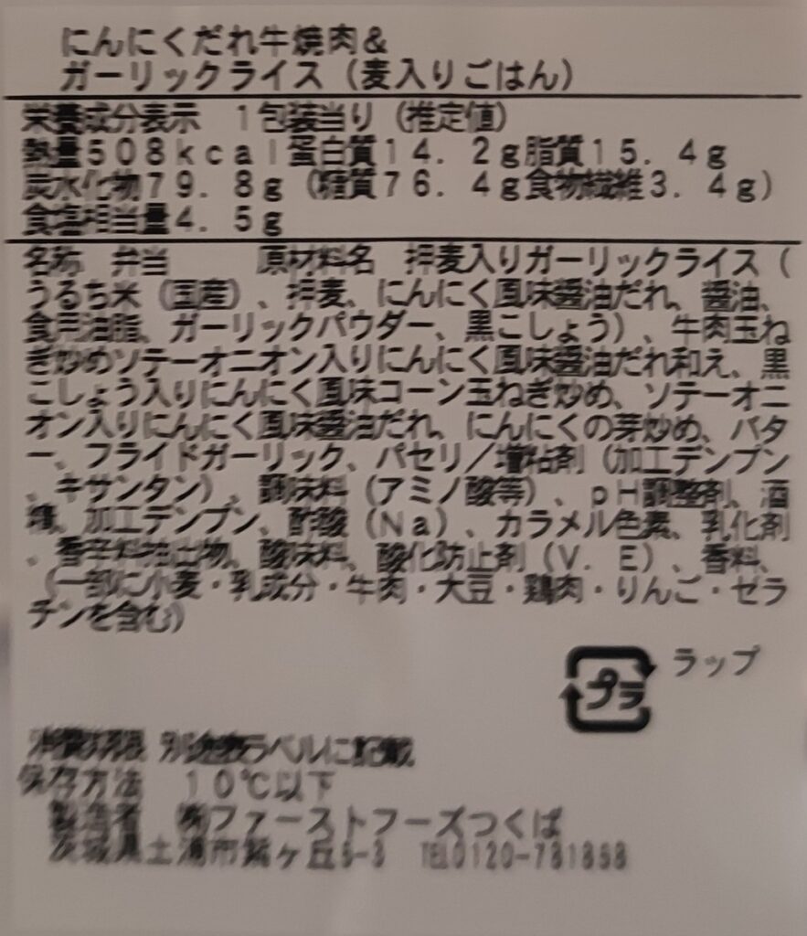『にんにくだれ牛焼肉&ガーリックライス(麦入りごはん)』645円(税込)| 508kcal